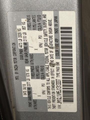 Equipped: 3-Level Heated Reclining Front Sport Bucket Seats, 4-Wheel Disc Brakes, 6 Speakers, ABS brakes, Air Conditioning, Alloy wheels, AM/FM radio, Anti-whiplash front head restraints, AppLink/Apple CarPlay and Android Auto, Auto High-beam Headlights, Automatic temperature control, Brake assist, Bumpers: body-color, Delay-off headlights, Driver door bin, Driver vanity mirror, Dual front impact airbags, Dual front side impact airbags, Electronic Stability Control, Emergency communication system: MAZDA CONNECT, Exterior Parking Camera Rear, Four wheel independent suspension, Front anti-roll bar, Front Bucket Seats, Front Center Armrest w/Storage, Front dual zone A/C, Front reading lights, Fully automatic headlights, Heated front seats, Illuminated entry, Leather Shift Knob, Leatherette Seat Trim, Low tire pressure warning, Occupant sensing airbag, Outside temperature display, Overhead airbag, Overhead console, Panic alarm, Passenger door bin, Passenger vanity mirror, Power door mirrors, Power driver seat, Power moonroof, Power steering, Power windows, Radio data system, Radio: AM/FM/HD, Rain sensing wipers, Rear anti-roll bar, Rear reading lights, Rear seat center armrest, Rear window defroster, Remote keyless entry, Speed control, Speed-sensing steering, Split folding rear seat, Steering wheel mounted audio controls, Tachometer, Telescoping steering wheel, Tilt steering wheel, Traction control, Trip computer, Turn signal indicator mirrors, Variably intermittent wipers, and Wheels: 19" Alloy w/Gun Metallic Finish.
